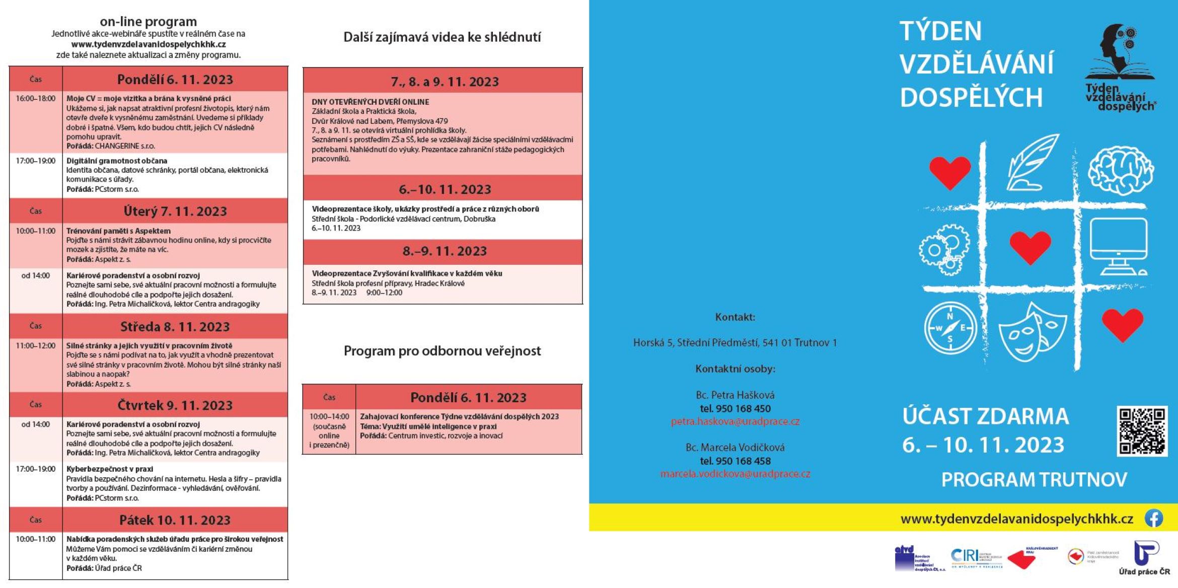 V týdnu od 6.-10.11.2023  se můžete těšit na spoustu zajímavých hostů, seminářů, workshopů, přednášek, kurzů a mnoho dalšího.